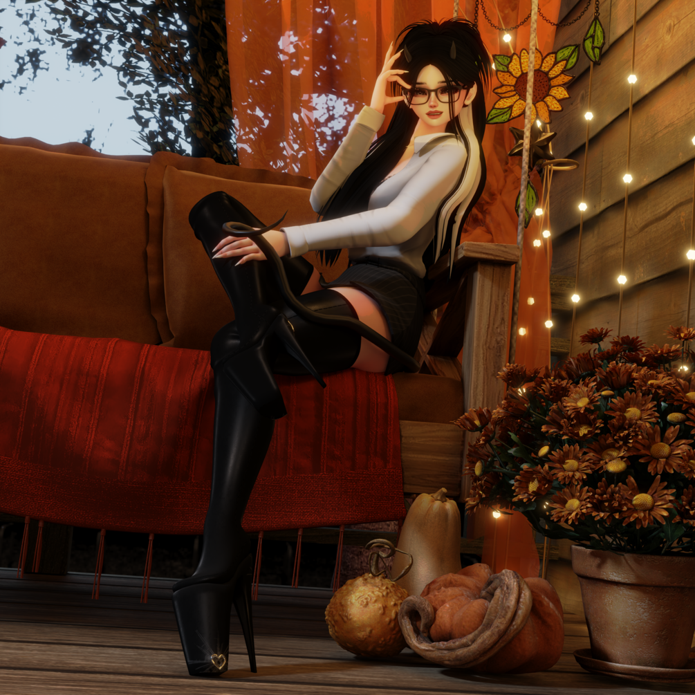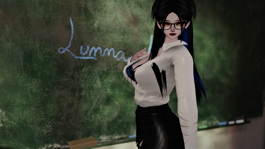 - Clothing: Skirt, Heels, Blouse, Panties, Bra